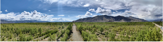 二十多年前的南木林縣惡劣的自然環(huán)境嚴重影響了全縣各族群眾生產(chǎn)生活。2002年,山東援藏干部抵達南木林縣,面對周圍的一片光禿,大力開展植樹造林,誓把高原變綠洲。從那時起,一批批山東濰坊援藏干部人才前赴后繼,以一茬接著一茬干、一張藍圖繪到底的毅力決心建成了世界屋脊上的“塞罕壩”。讓綠水青山與冰天雪地相伴,讓綠色生態(tài)與民生福祉相連,時間不語,光影見證。