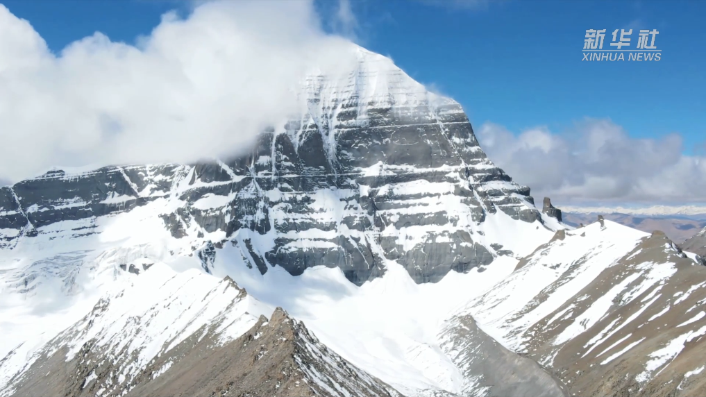 岡仁波齊山頂常年積雪,冰川延伸至山腳,景色壯觀。