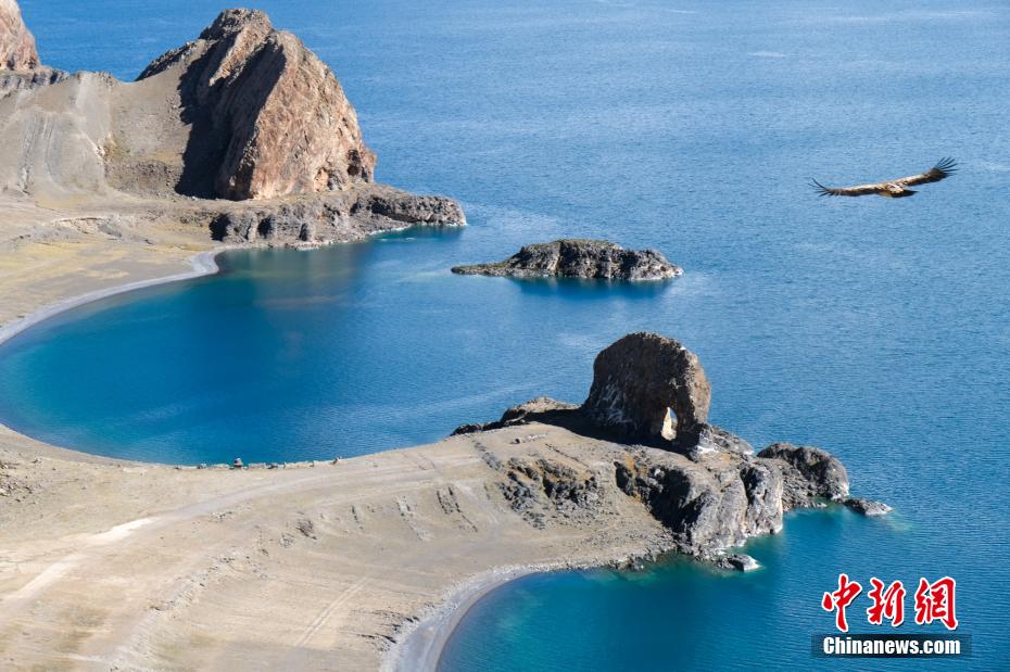 國慶期間,中新網(wǎng)記者自駕西藏藏北羌塘草原,途經(jīng)“天湖”納木錯,高原鹽湖班戈湖以及西藏第一大湖色林錯等地。秋天高原藍天白云的映襯下,藏北湖泊猶如一面面巨大的“寶石藍”鏡子鑲嵌于高原大地,景色壯麗。圖為10月1日,西藏納木錯圣象天門風光。