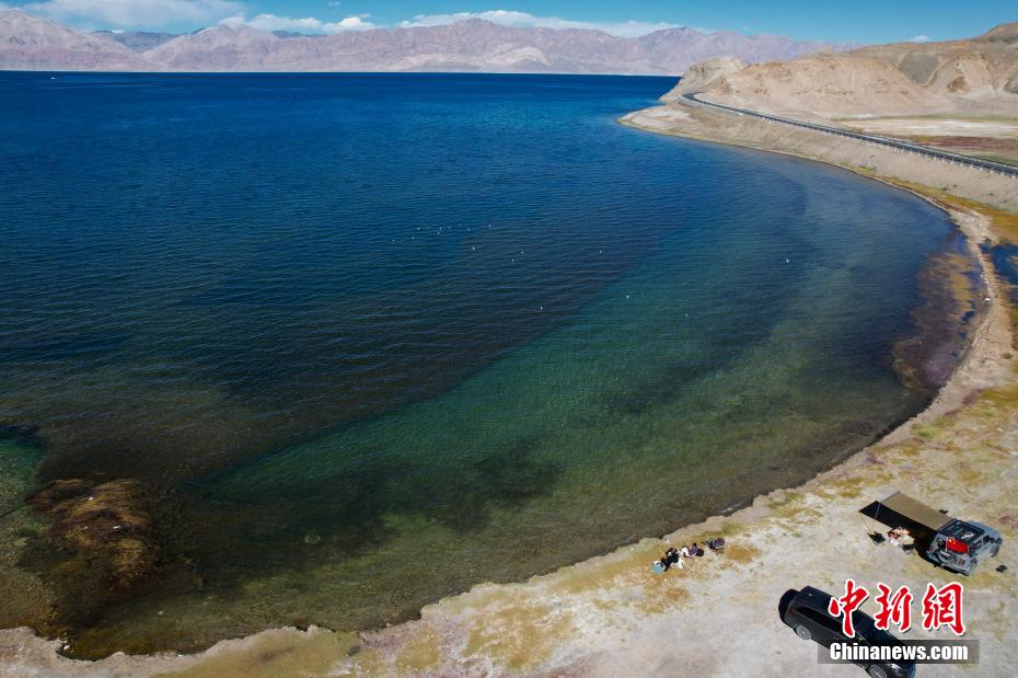 10月4日,游客在班公湖邊休閑露營?!笆弧眹鴳c假期,不少游客來到西藏日土縣班公湖游玩。(無人機(jī)照片)