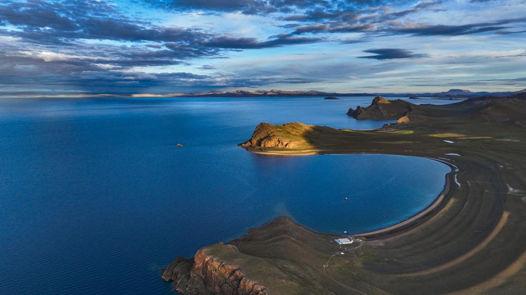 7月11日傍晚的納木錯(cuò)湖畔(無(wú)人機(jī)照片)。新華社記者 晉美多吉 攝
