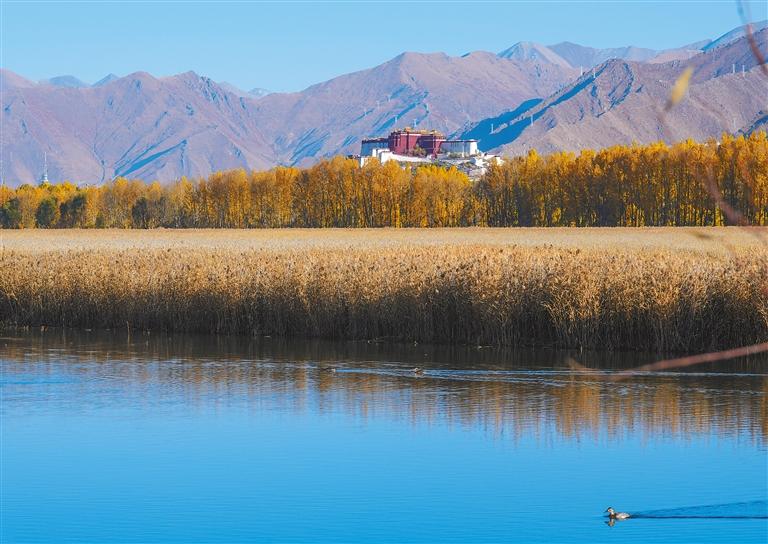 立冬時節(jié),被稱為“拉薩之肺”的拉薩市拉魯濕地國家級自然保護區(qū)景色依舊。草木盡染,水天相映,與遠處的城市建筑共同構(gòu)成一幅美麗的生態(tài)畫卷。拉魯濕地是世界上海拔最高、面積最大的城市天然濕地,是拉薩市氧氣的主要補給源。