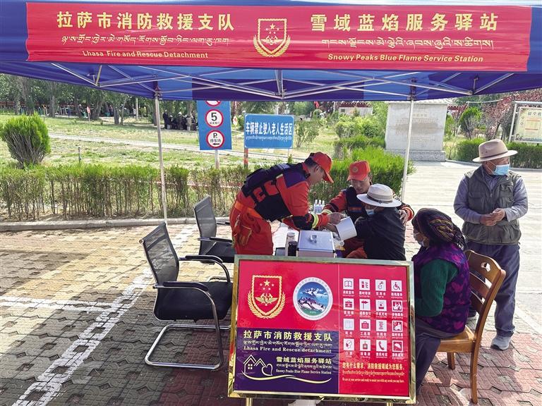為了確保布達(dá)拉宮文物古跡安全,自1984年起,一個(gè)消防班入駐布達(dá)拉宮。2003年,布達(dá)拉宮消防班升格為消防中隊(duì)。2005年,再次升格為消防救援大隊(duì)。目前大隊(duì)共有漢、藏等多個(gè)民族的消防指戰(zhàn)員49人,他們每天用“眼看、手摸、鼻聞、儀器測(cè)”等方式,檢查識(shí)別電氣線路絕緣是否老化、酥油燈罩是否發(fā)燙、消防設(shè)施是否完好。入駐至今,消防指戰(zhàn)員走過的檢查路程相當(dāng)于繞地球3圈半。
