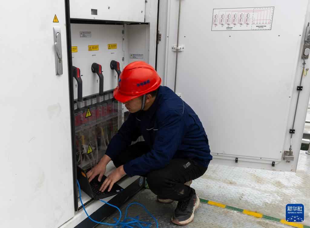 18時(shí)許,楊升平和同事們結(jié)束當(dāng)天的檢查工作,回到山下的升壓站。楊升平向公司匯報(bào)一天的工作內(nèi)容,接著安排人員對(duì)儲(chǔ)能電池放電。