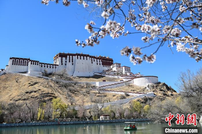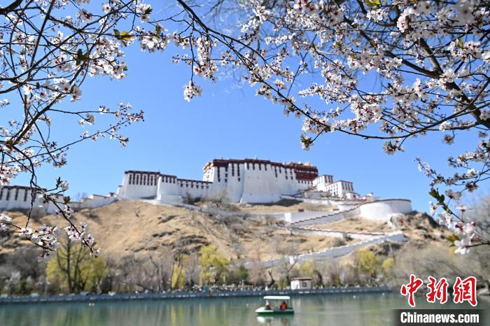 3月24日,在西藏自治區(qū)拉薩市宗角祿康公園,杏花競(jìng)相綻放,春意盎然。中新社記者 貢嘎來松 攝
