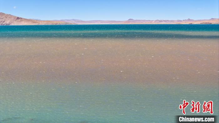 3月27日,航拍西藏自治區(qū)那曲市安多縣錯(cuò)那湖,湖水交匯處好似“鴛鴦火鍋”。錯(cuò)那湖是怒江的源頭湖,海拔4600米左右,是世界上海拔最高的淡水湖,也是青藏鐵路沿線(xiàn)著名景點(diǎn)之一。(無(wú)人機(jī)照片)中新社記者 馬銘言 攝