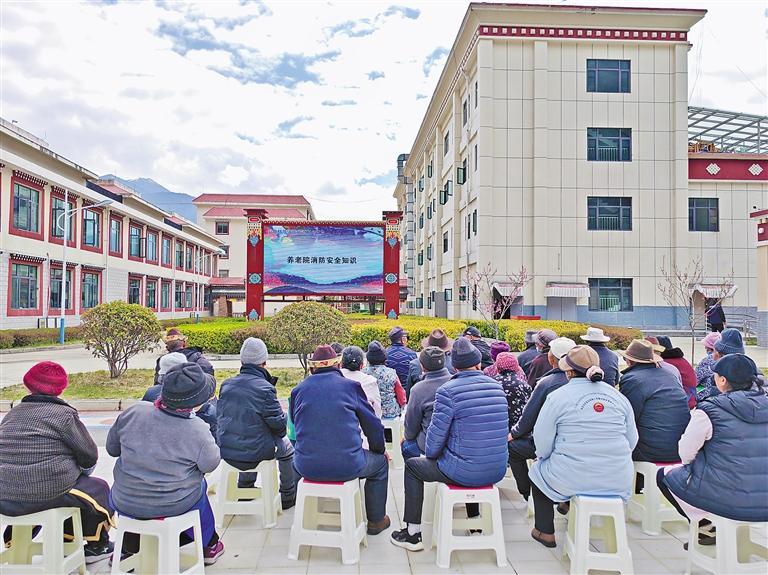林芝市巴宜區(qū)消防救援大隊(duì)宣傳人員走進(jìn)養(yǎng)老機(jī)構(gòu)開展消防安全宣傳。通訊員 才旺多吉 攝