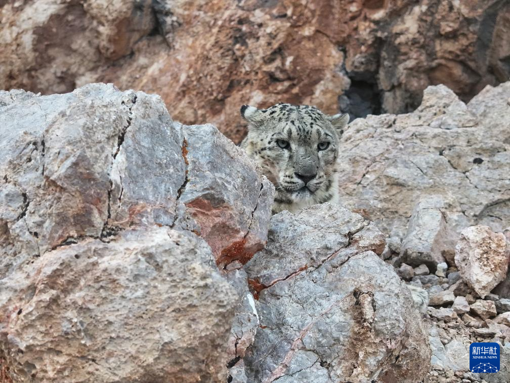 西藏阿里改則縣改則鎮(zhèn)玉多村附近巖山區(qū)域拍攝到的國家一級保護(hù)動(dòng)物雪豹(4月18日攝)。