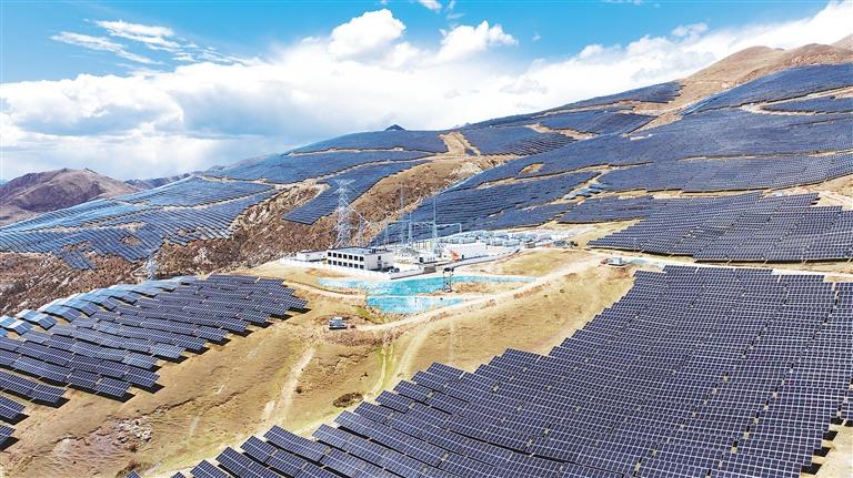 位于拉薩市墨竹工卡縣扎西崗鄉(xiāng)的華能拉薩扎西崗100兆瓦光儲發(fā)電項目,是自治區(qū)2023年保障性并網(wǎng)清潔能源項目。該項目采用“牧光互補”模式開發(fā),通過“板上發(fā)電、板間種草、板下放羊”,可實現(xiàn)生態(tài)環(huán)境保護、清潔能源發(fā)展、土地高效利用、群眾增收致富的“多贏”局面。