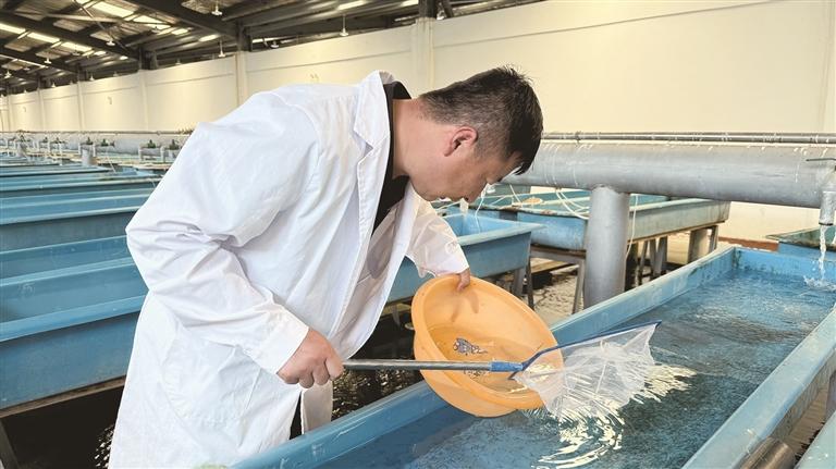 基因組信息更直接指導(dǎo)了全人工繁育體系的優(yōu)化?!拔覀儼l(fā)現(xiàn)黑斑原鮡的性腺發(fā)育與光照周期、水溫存在強(qiáng)關(guān)聯(lián)。”王萬(wàn)良說,團(tuán)隊(duì)還通過轉(zhuǎn)錄組測(cè)序揭示了苗種拒食行為的分子機(jī)制——其腸道缺乏消化植物蛋白的基因,這促使科研人員開發(fā)出以小型水生動(dòng)物為主的專用飼料,成功解決了開口餌料難題。