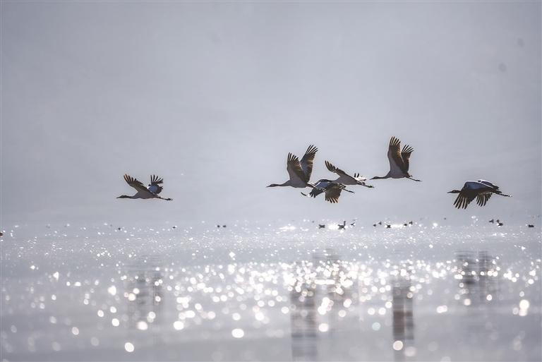 近日,被譽(yù)為 “高原仙子”的國家一級保護(hù)動物黑頸鶴如期飛抵拉薩市林周縣卡孜水庫越冬,與斑頭雁、赤麻鴨等水鳥共同構(gòu)成高原濕地生態(tài)畫卷。