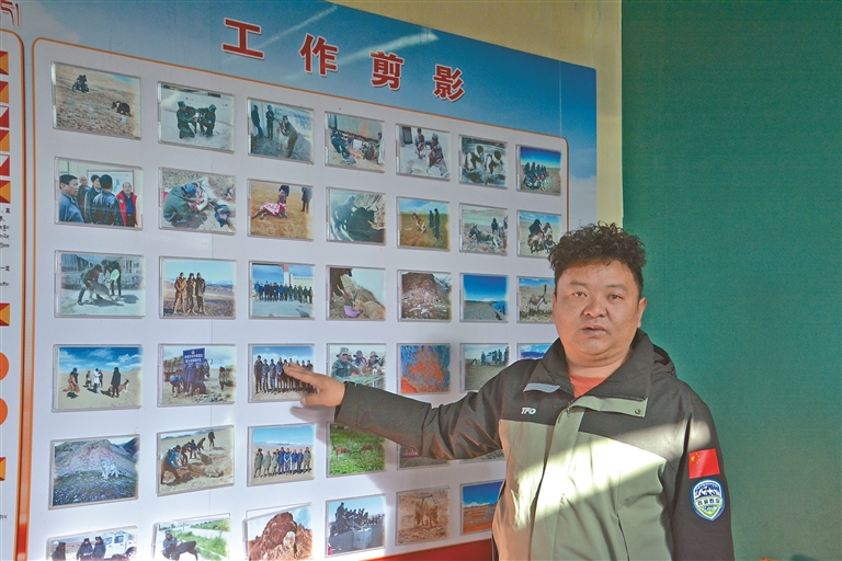 尼瑪縣羅布玉杰管護(hù)站負(fù)責(zé)人格桑倫珠在介紹野生動(dòng)物保護(hù)工作開(kāi)展情況。記者 汪純 攝