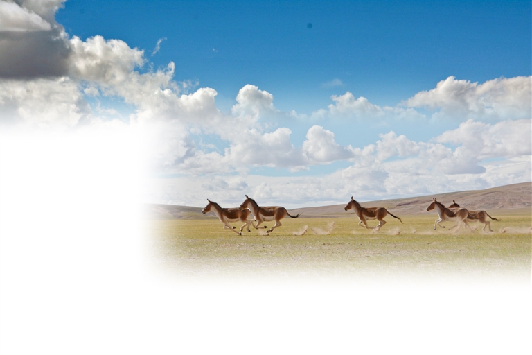 羌塘國(guó)家級(jí)自然保護(hù)區(qū)內(nèi)盡情奔跑的藏野驢。記者 汪純 攝