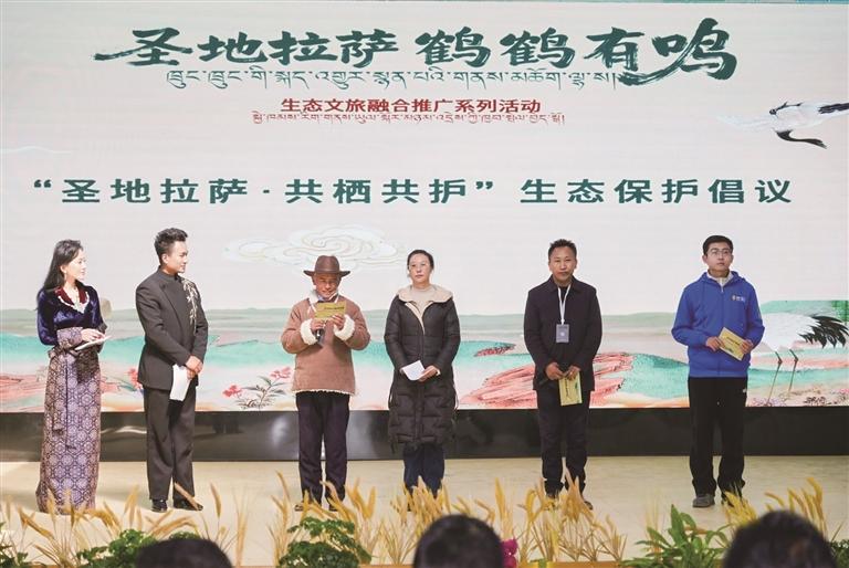 啟動(dòng)儀式上,拉薩市生態(tài)環(huán)境局、 拉薩市林業(yè)和草原局、高原守鶴人旦增、美麗公約組織代表共同發(fā)起“圣地拉薩·共棲共護(hù)”生態(tài)保護(hù)倡議,呼吁全社會(huì)共同參與生態(tài)保護(hù)與可持續(xù)發(fā)展。