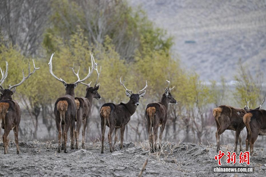 3月15日,在西藏山南市雅魯藏布江沿岸林地,中國國家一級保護動物白唇鹿成群現(xiàn)身。它們或漫步覓食,或駐足觀望,與高原江水、河谷林木、城市建筑相映成趣,構(gòu)成和諧畫面。