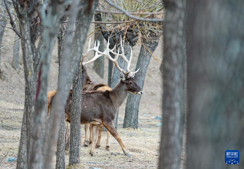 這是3月15日在西藏山南市乃東區(qū)結(jié)巴村拍攝的白唇鹿。新華社記者 晉美多吉 攝