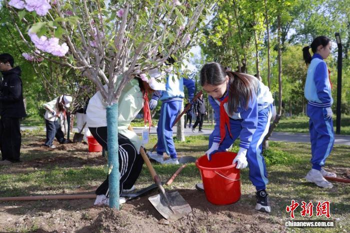 圖為活動(dòng)現(xiàn)場,來自北京和西藏的青少年共同參與植樹活動(dòng)。(中國宋慶齡青少年科技文化交流中心 供圖)