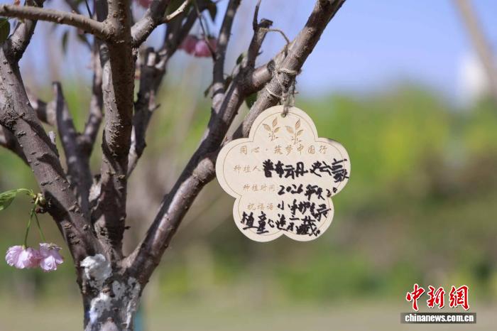 圖為栽好樹苗后,京藏兩地青少年在樹牌上共同寫下彼此的名字。(中國宋慶齡青少年科技文化交流中心 供圖)