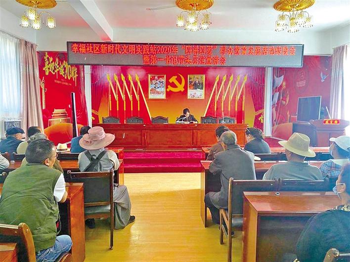 近日,拉薩市功德林街道幸福社區(qū)組織社區(qū)居民代表、組長、聯(lián)戶代表等共100余人,開展了新時代文明實踐站2020年“四講四愛”群眾教育實踐活動轉(zhuǎn)段會暨第一書記帶頭示范宣講會。