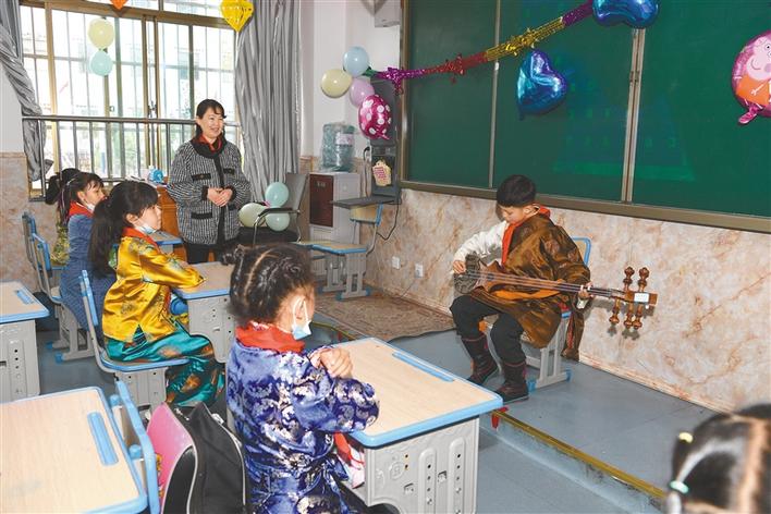 圖為拉薩市北京小學(xué)西校區(qū)的孩子們在主題班會上展示才藝。記者 唐斌 次旺 攝