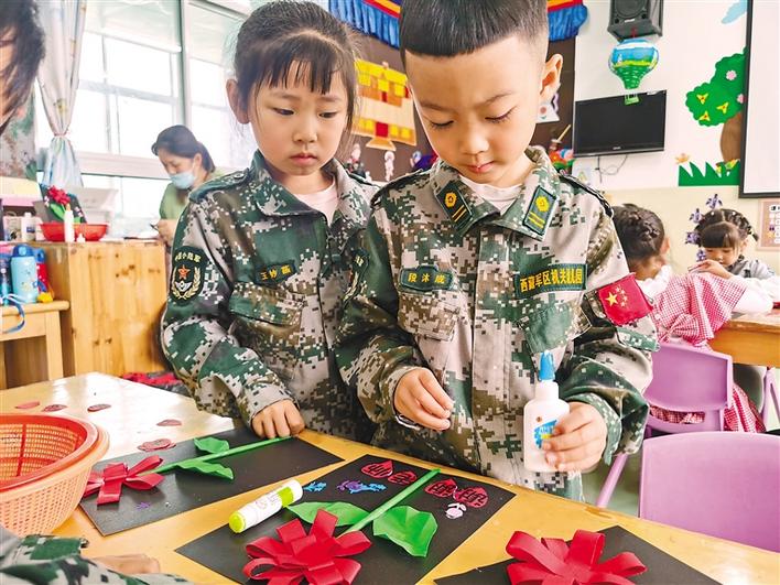圖為教師節(jié)來臨之際,西藏軍區(qū)機關(guān)幼兒園的學(xué)生為老師制作節(jié)日祝??ㄆ?。記者 王莉 攝