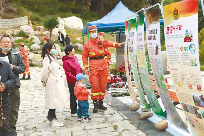 圖為指戰(zhàn)員向游客講解森林防火知識(shí)。西藏日?qǐng)?bào)記者 張猛 攝