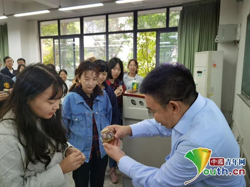圖為陳學(xué)偉教授為同學(xué)們講解如何培育“種子精靈”。中國(guó)青年網(wǎng)通訊員 宋翎瑞 攝