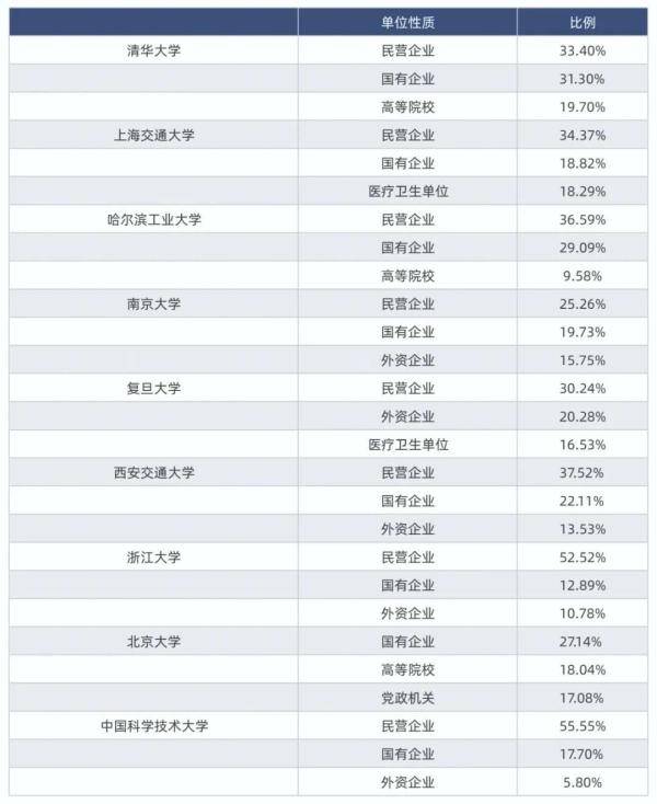 而除去北京大學(xué)和復(fù)旦大學(xué),在其他7所高校中,國(guó)有企業(yè)均占比第二。