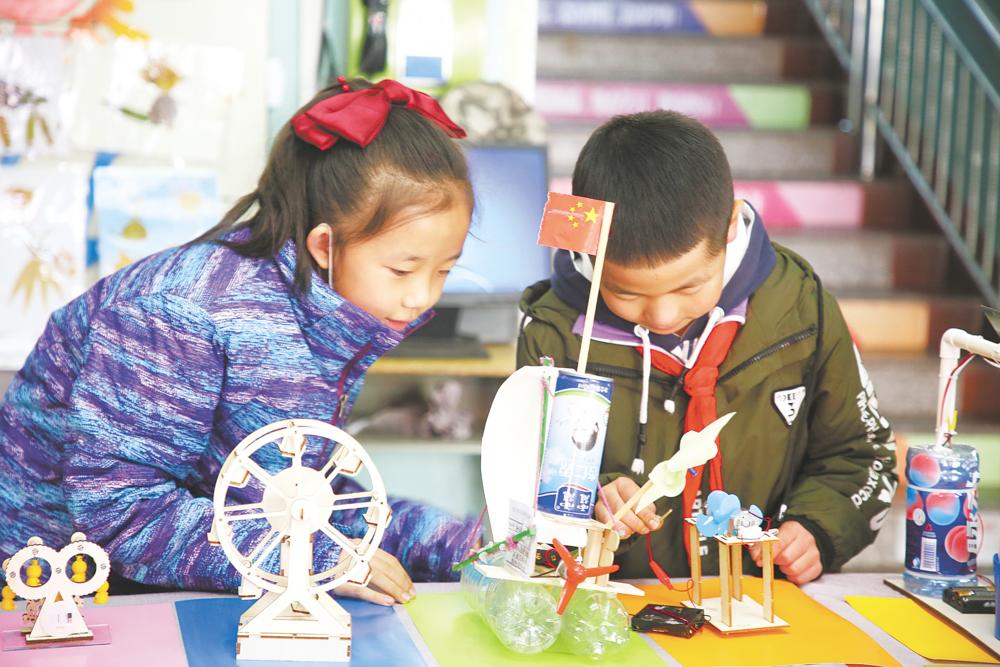 學(xué)生們進行科技小制作。范生棟 攝