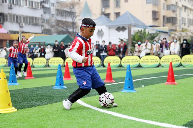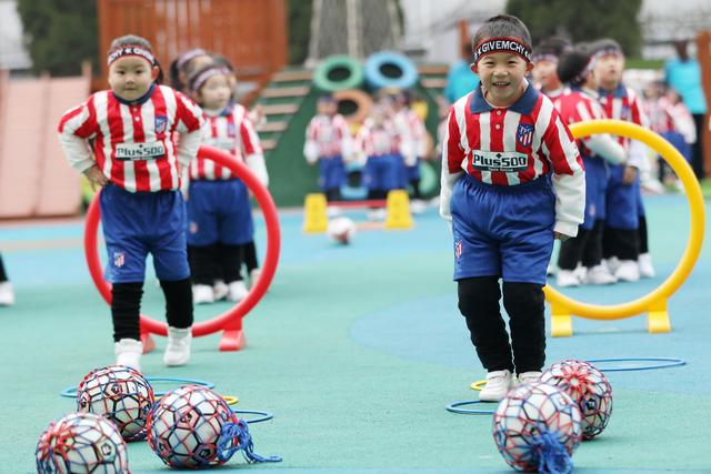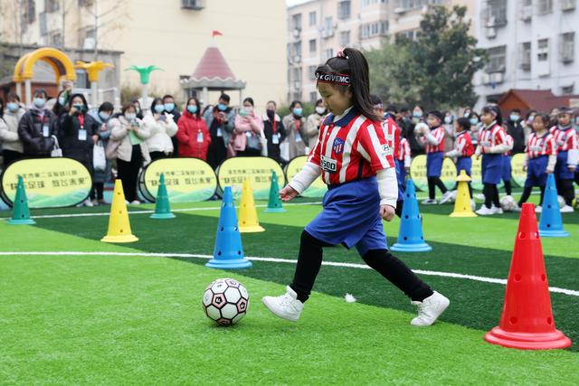 12月7日,淮北市第二實(shí)驗(yàn)幼兒園的小朋友在足球課上學(xué)習(xí)踢足球。