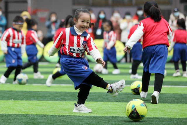 12月7日,淮北市第二實(shí)驗(yàn)幼兒園的小朋友在足球課上學(xué)習(xí)踢足球。安徽省淮北市第二實(shí)驗(yàn)幼兒園是一所“全國(guó)足球特色幼兒園”。該園把足球列入幼兒園體育課教學(xué)內(nèi)容,通過開設(shè)幼兒足球趣味練習(xí)、足球游戲等特色課程,向孩子們傳授足球基本知識(shí)和技巧,從小培養(yǎng)孩子們對(duì)足球的興趣,讓他們感受足球運(yùn)動(dòng)的魅力,健康快樂成長(zhǎng)。新華社發(fā)(萬善朝 攝)