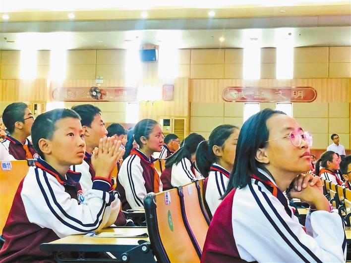 珠海四中內(nèi)地西藏班師生認(rèn)真聽取報告。