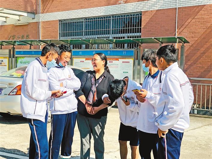 西藏大學(xué)理學(xué)院教授、博士生導(dǎo)師、內(nèi)地西藏班優(yōu)秀畢業(yè)生代表黃香(左三)與內(nèi)地西藏班學(xué)生進(jìn)行交流。