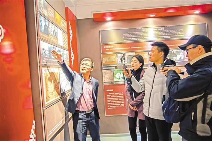 圖為波密縣委紅樓的工作人員在為慕名而來參觀的游客講解紅樓歷史。張猛 胡文 攝