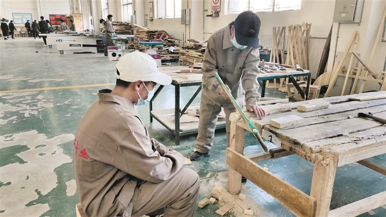 圖為該校木工專業(yè)的學(xué)生正在實操練習(xí)。余洋洋攝