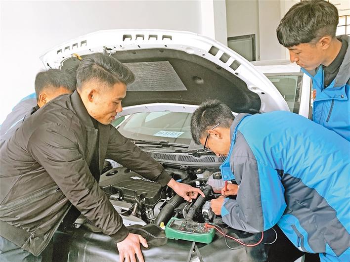 圖為林芝市職業(yè)技術(shù)學(xué)校汽修專業(yè)學(xué)生在老師的指導(dǎo)下進(jìn)行實(shí)操訓(xùn)練。記者 張猛 攝