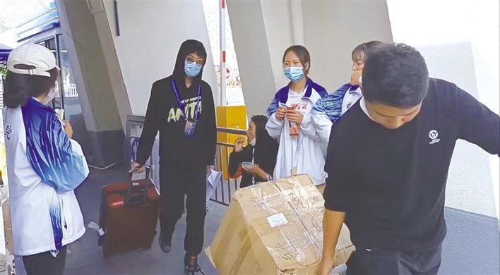 據(jù)迎新工作人員介紹,新生入校后,黨員志愿服務隊會對新生進行身份核驗、測體溫,學生志愿服務隊會幫新生將行李搬運至新生報到處,新生在報到處辦理好入學手續(xù)后,志愿服務隊的工作人員還會負責將學生行李搬運至新生宿舍。
