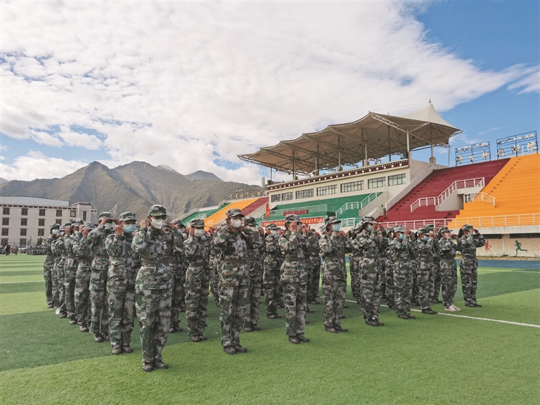 拉薩市第二中等職業(yè)技術學校舉行2021級新生愛國主義軍訓開營儀式