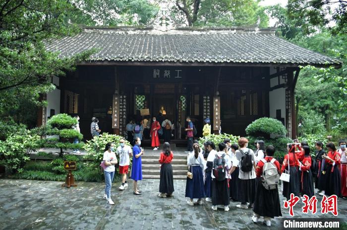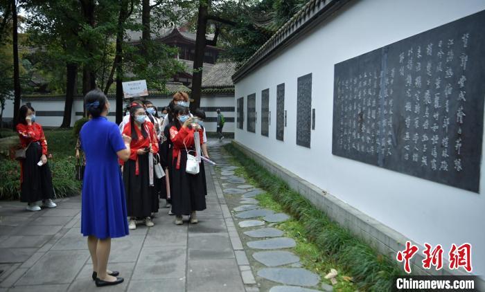 在成都的港澳臺(tái)僑大學(xué)生們正在參觀杜甫草堂博物館?!⒅铱?攝