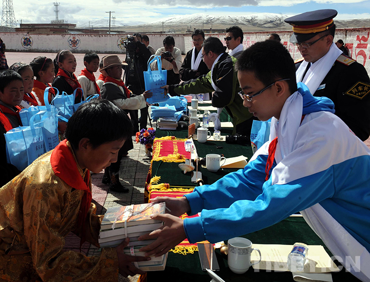 為了幫助西藏貧困地區(qū)的藏族孩子學(xué)到更多的科學(xué)文化知識,豐富他們的業(yè)余文化生活,新華社北京分社在捐贈中號召黨團員積極參與,共捐藏漢文書籍1000多冊,并委托我將這些書送到西藏孩子手中。