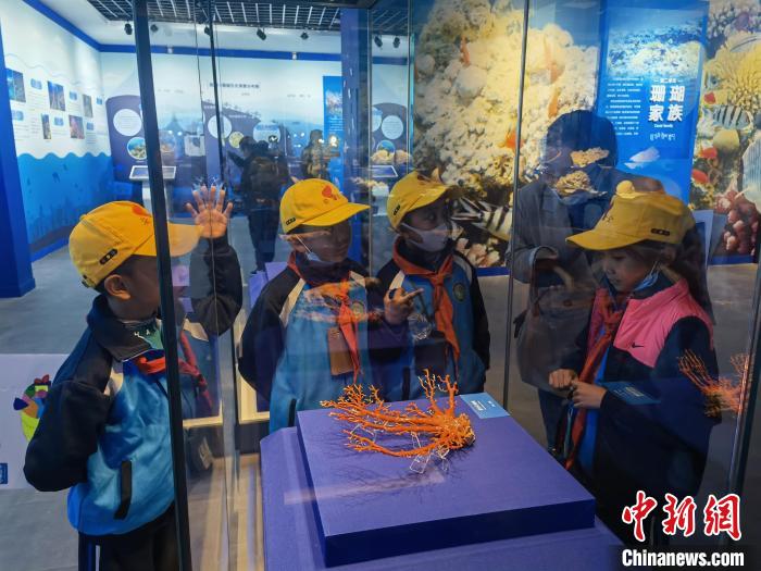 圖為正在參觀珊瑚展的西藏小學(xué)生。 趙延 攝