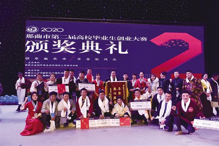 那曲市第二屆高校畢業(yè)生創(chuàng)業(yè)大賽頒獎(jiǎng)現(xiàn)場(chǎng)。