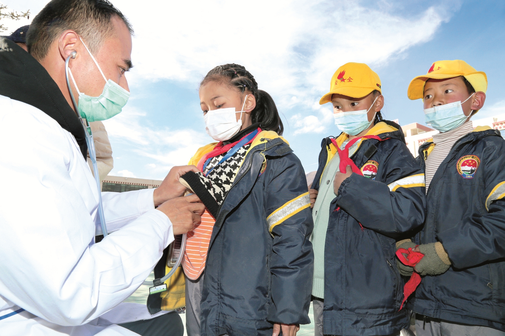 圖為南京醫(yī)科大學第二附屬醫(yī)院醫(yī)生在為小學生開展先心病篩查。 通訊員 德吉卓嘎攝