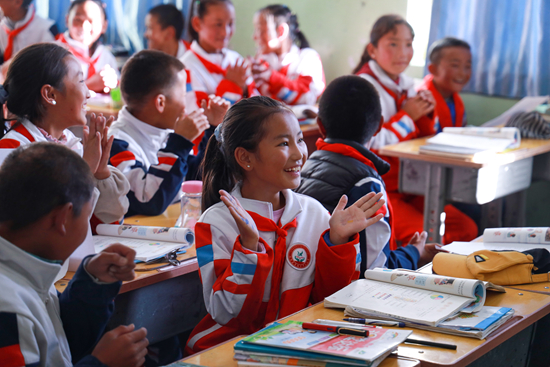 充分了解當(dāng)?shù)亟虒W(xué)情況和學(xué)生需求后,關(guān)愛隊師生為藏族孩子們定制了英語、音樂、素質(zhì)拓展等一系列特色課程。
