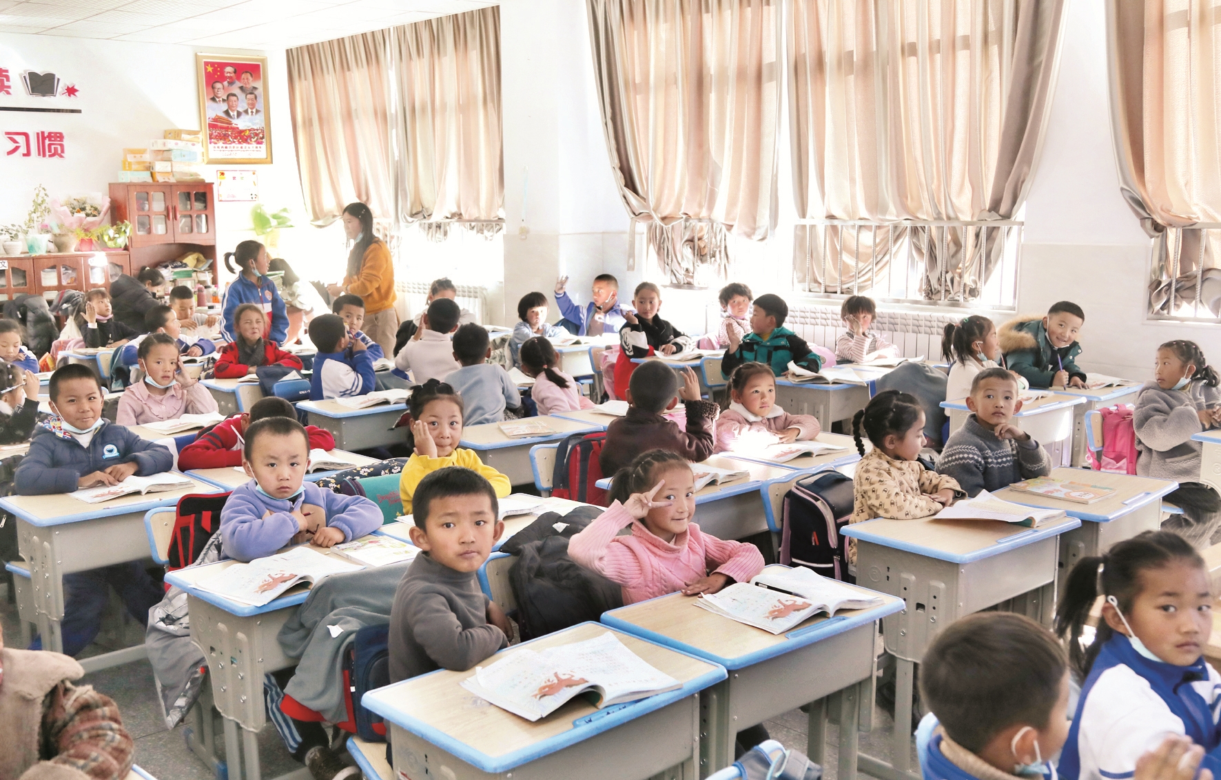 圖為學(xué)生在裝有暖氣片的教室里上課。 拉薩融媒記者 索 曲攝