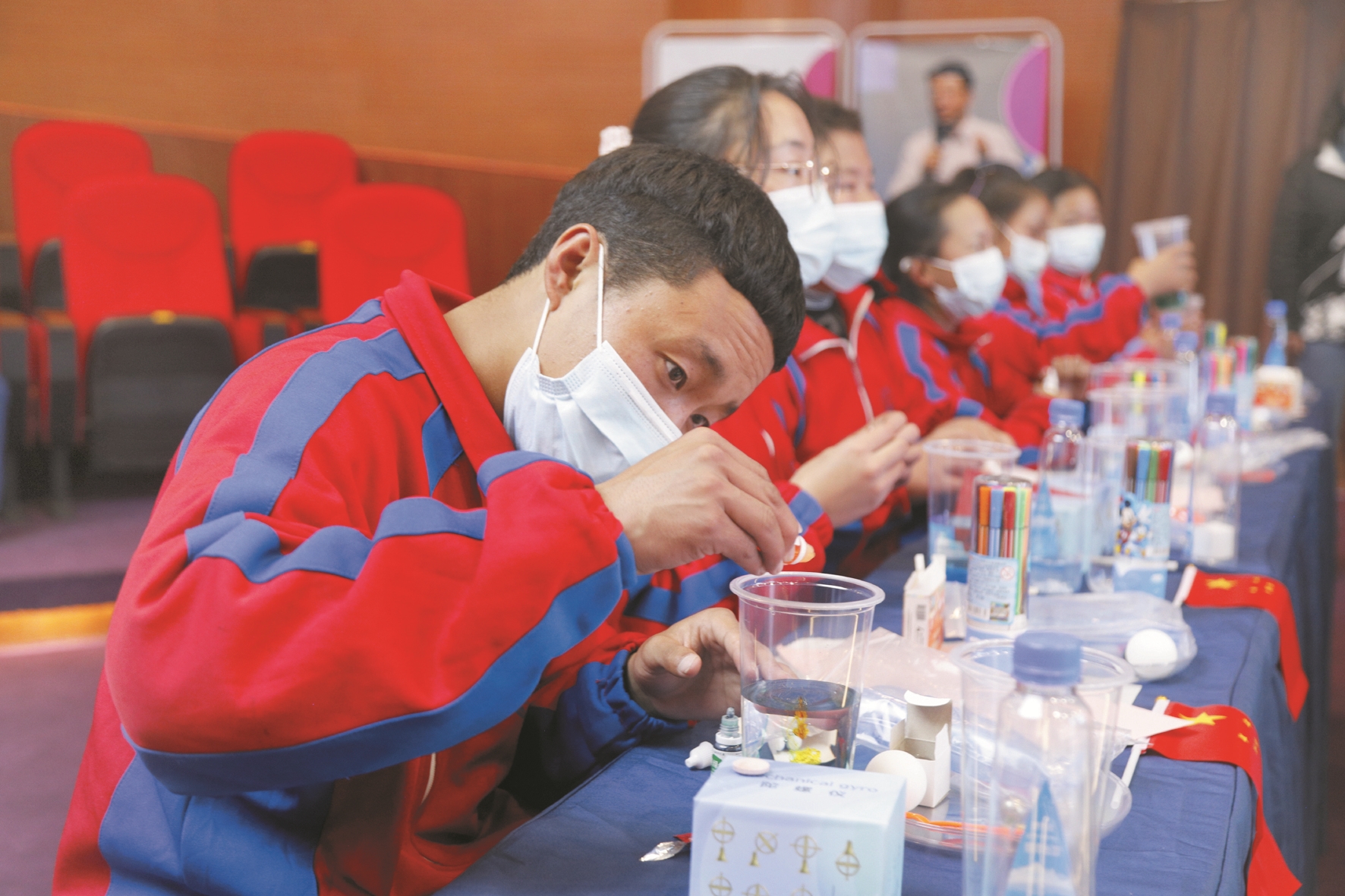 圖為學(xué)生跟隨航天員在同步做實驗。拉薩融媒記者 索 曲攝