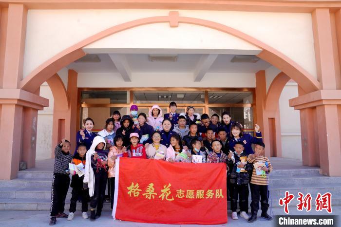 圖為志愿者給孩子們發(fā)放慰問品?!∈└?攝