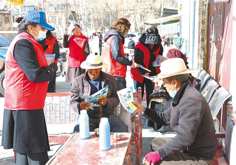 圖為山南市中級(jí)人民法院女法官、女干警深入乃東區(qū)羅布林卡社區(qū)開展法治宣傳教育活動(dòng)。記者 段敏 攝