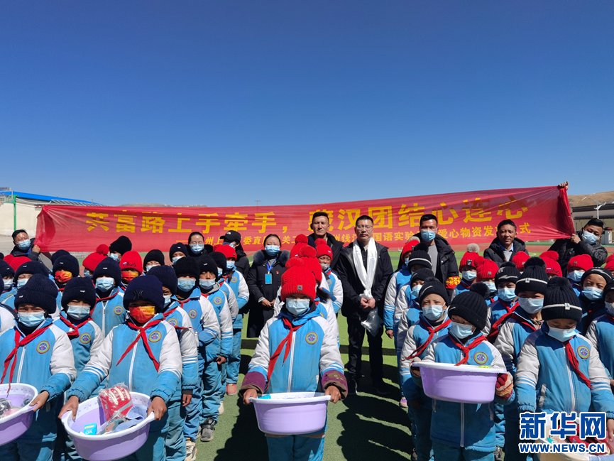 春天來了,萬物復(fù)蘇。18日,位于海拔4800米的那曲市色尼區(qū)洛麥鄉(xiāng)完全小學(xué)的操場上還有冰雪殘留。但排著整齊隊列的孩子們心里卻暖暖的,臉上露出快樂的笑容。當(dāng)天,全校500多名學(xué)生每人領(lǐng)到了一份來自浙江杭州的暖心大禮包:厚手套、防裂膏、保暖耳罩和學(xué)習(xí)用品。