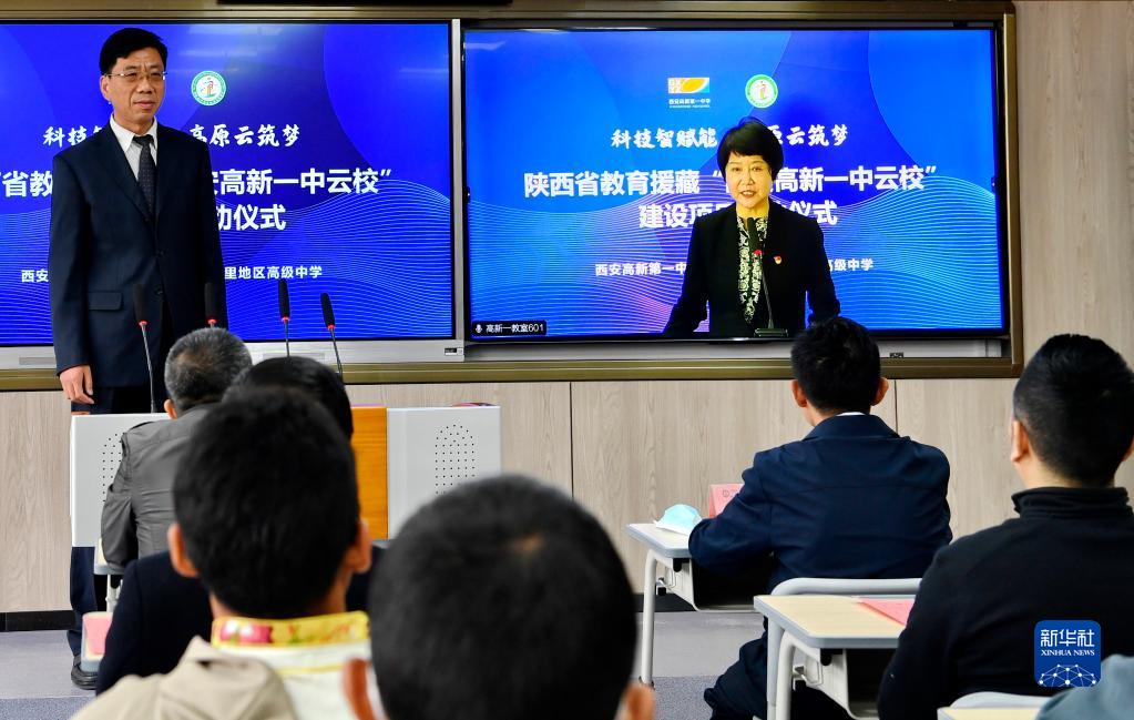 當日,陜西省教育援藏“云?!苯ㄔO項目正式啟動。陜西省西安高新第一中學和西藏拉薩阿里地區(qū)高級中學結成“對子”,借助5G網絡開展教學教研互動,助力提升教育水平。